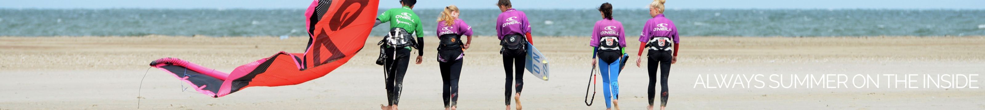 Bij de O'Neill SummerCamps krijgt iedereen Kitesurfles op zijn eigen niveau, maak je heel veel nieuwe vrienden en kan je 's avonds lekker chillen in een hangmat of bij het kampvuur op het strand.